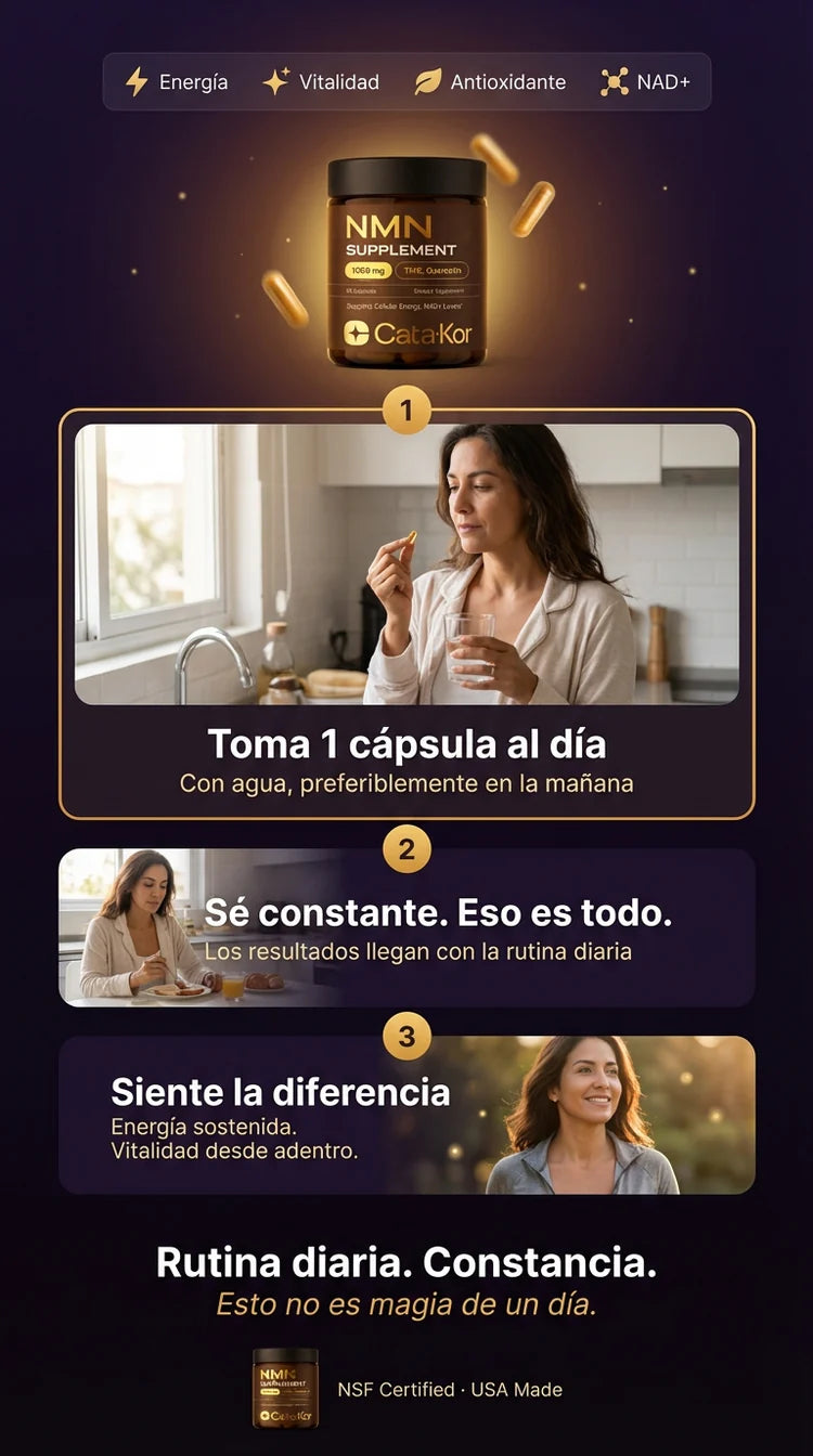 A medida que el cuerpo se adapta a los niveles más altos de NAD+, pueden producirse efectos temporales como dolores de cabeza leves. Estos suelen ser de corta duración. Puede ser útil comenzar con una dosis más baja.