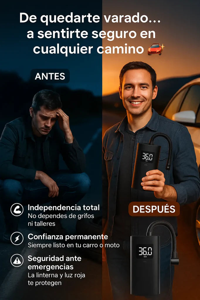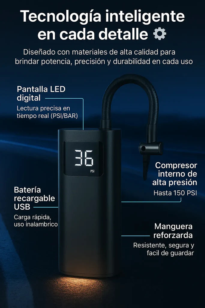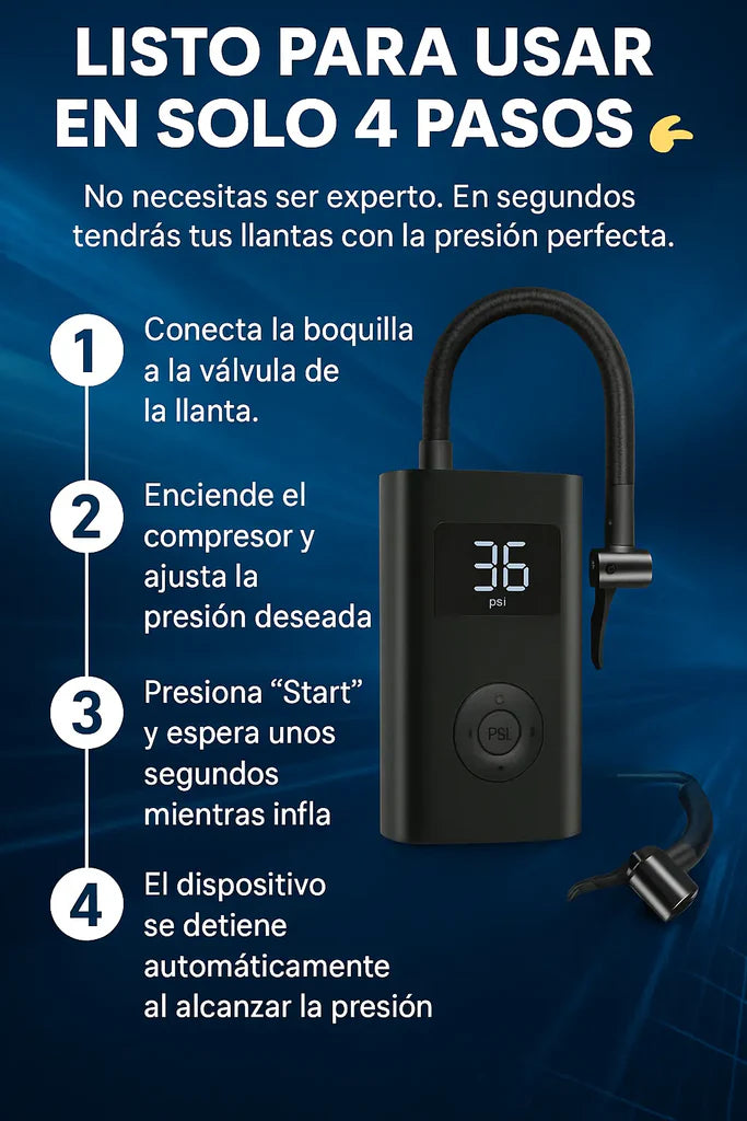 Normalmente entre 3 y 8 minutos, dependiendo del tamaño de la llanta y la presión inicial.
