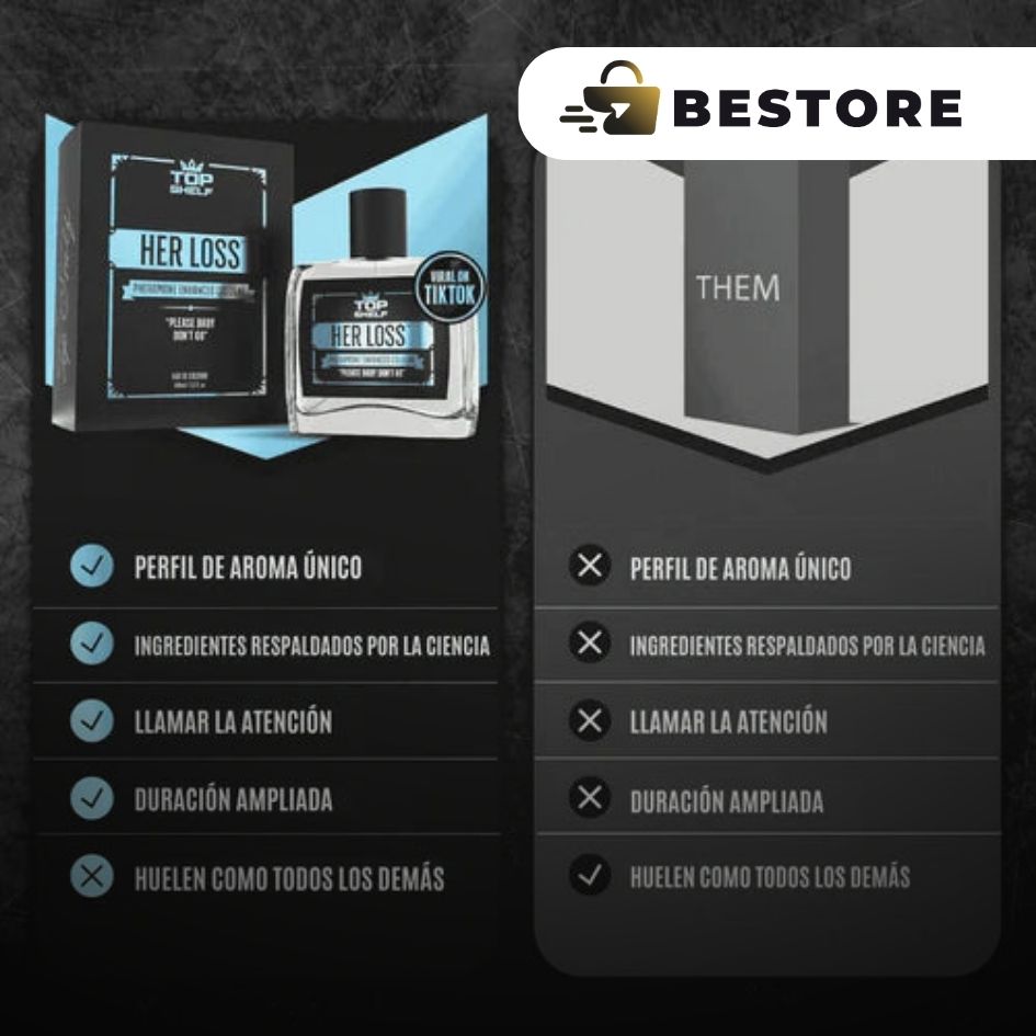 Diseñado con una fórmula única de feromonas, despierta los sentidos y eleva tu atractivo natural a otro nivel. Her Loss: el perfume que transforma cada encuentro en una experiencia seductora y magnética. ¡Siente el poder de seducir con solo un susurro de tu fragancia! Envío Gratis y Pago al Recibir.