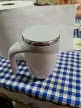 La taza tiene una capacidad de 380 ml, lo que la hace perfecta para mezclar una variedad de bebidas, desde café hasta batidos y jugos.
